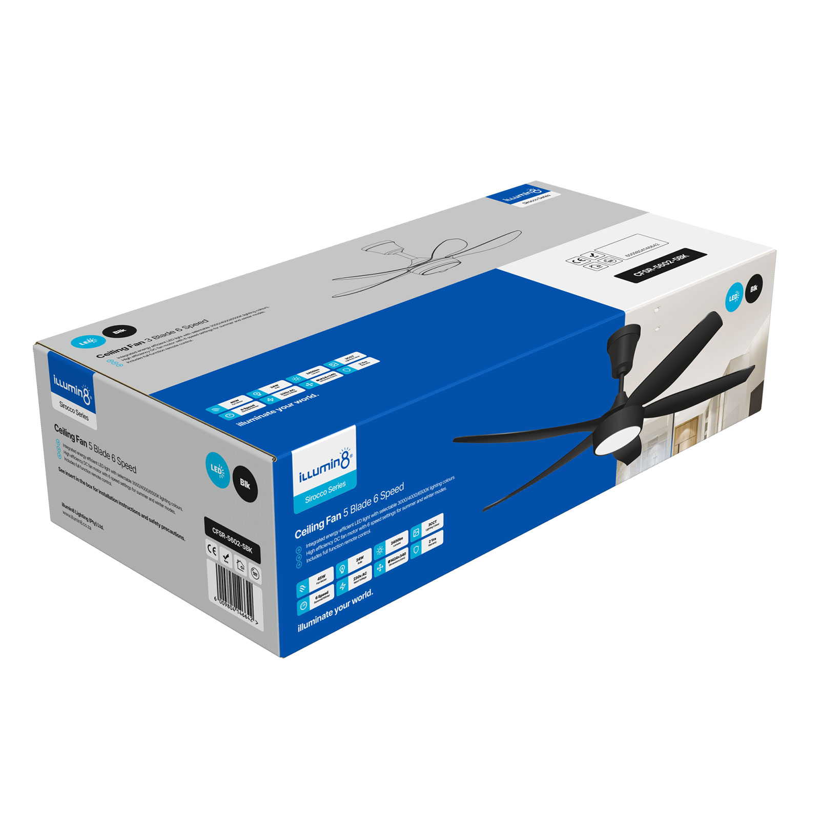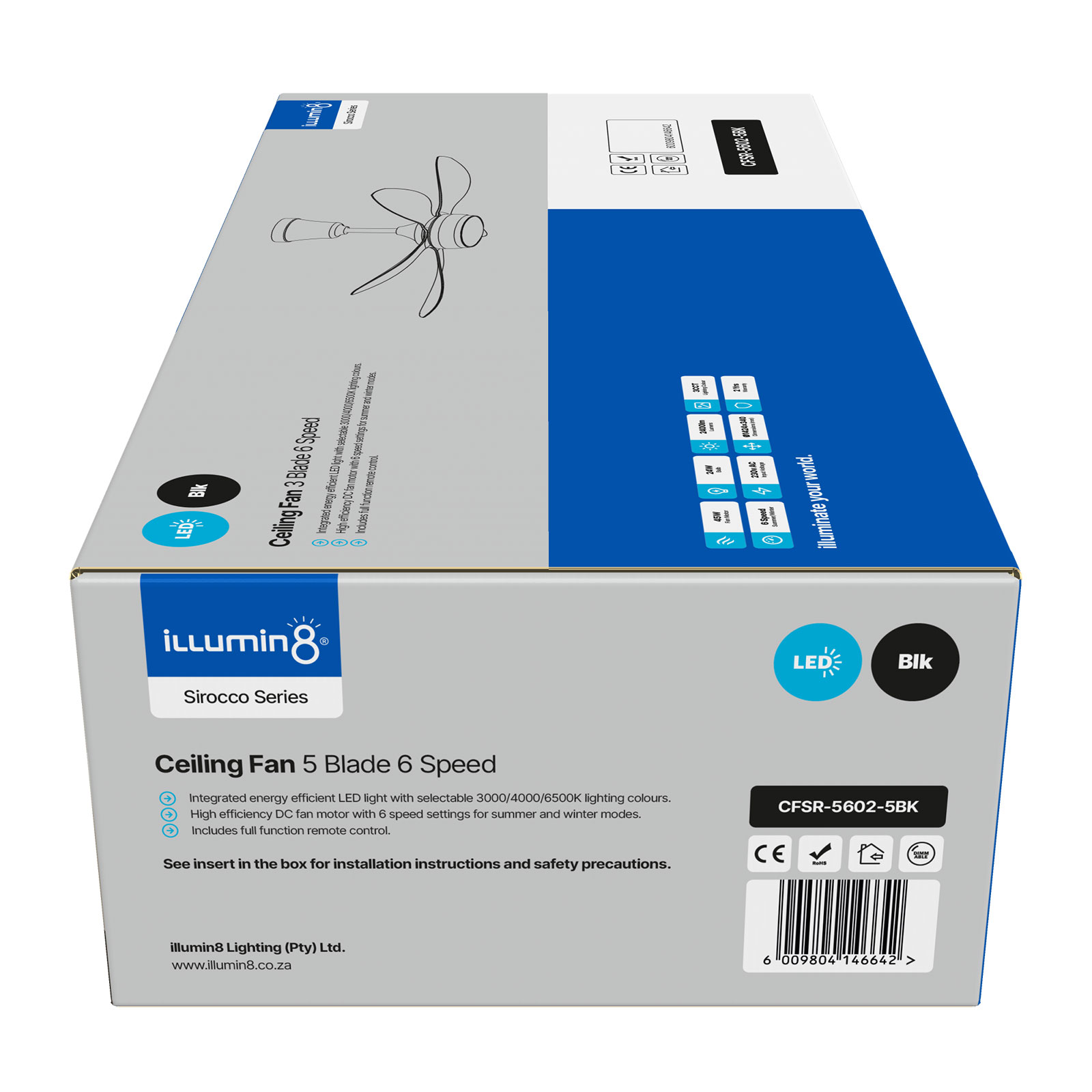Featuring a sleek 5-blade design that offers a modern aesthetic while ensuring optimal airflow and quiet operation. An integrated energy-efficient LED light provides versatile illumination with selectable colour temperatures of 3000K, 4000K, and 6500K, making it easy to set the right mood for any space. Powered by a high-efficiency DC motor, the fan offers six speed settings along with dedicated summer and winter modes for year-round comfort and energy savings. Complete with a full-function remote control, the Sirocco Series delivers effortless convenience, blending elegance, functionality, and efficiency in one refined ceiling fan.