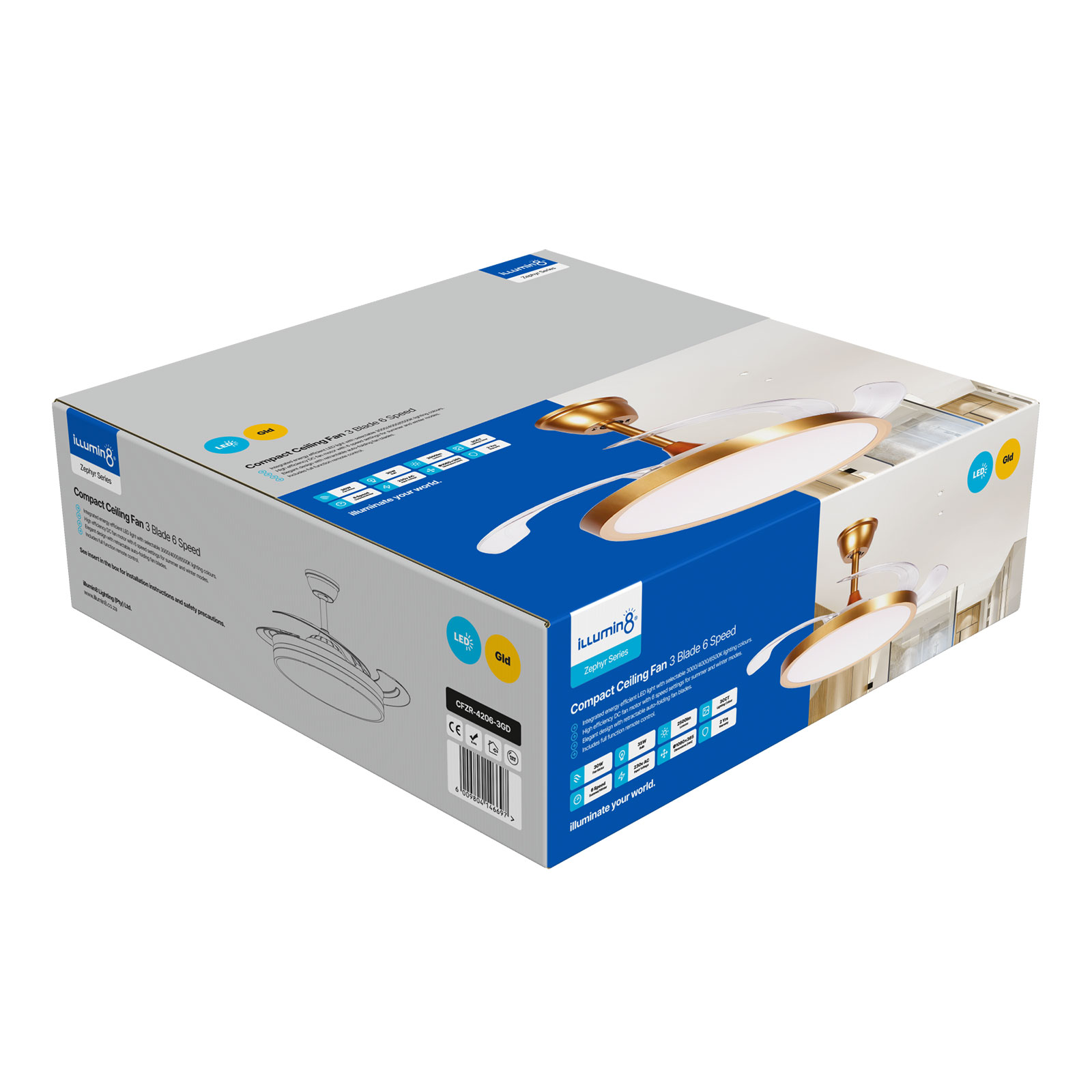 Elegant design featuring innovative retractable auto-folding blades that neatly conceal when not in use, creating a sleek and modern ceiling light aesthetic. The integrated energy-efficient LED light provides versatile illumination with selectable colour temperatures of 3000K, 4000K, and 6500K, allowing you to tailor the ambience to your preference. Driven by a high-efficiency DC motor, the fan delivers smooth, powerful airflow with six speed options and dedicated summer and winter modes for year-round comfort.